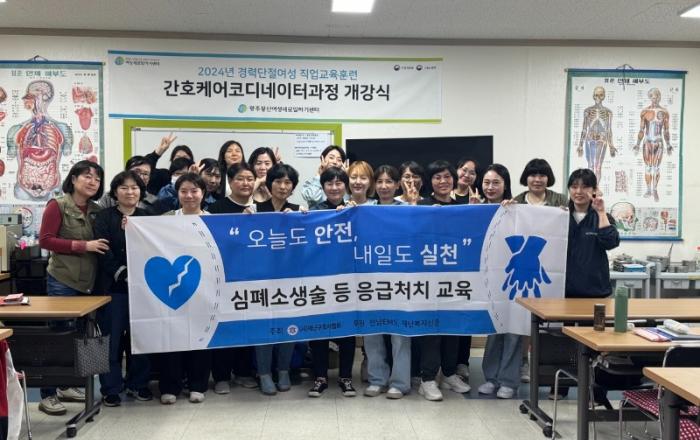 ▲ 간호케어코디네이터교육과정 응급상황대처요령습득▲ 간호케어코디네이터교육과정 응급상황대처요령습득(사)재난구호사협회는 광주광산여성새로일하기센터 주관 간호케어코디네이터교육과정 비엘에스(BLS)교육을 2024년 4월 19일 ~ 22일 2일간 실시하였다.비엘에스(BLS)교육은
