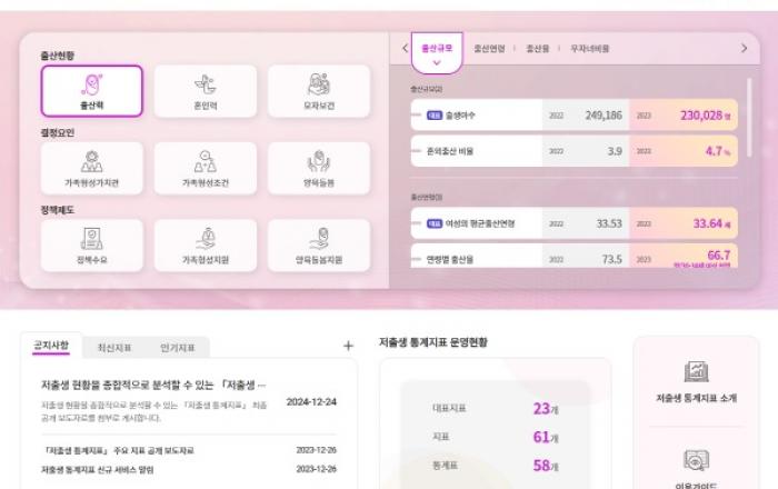 통계청은 24일 저출생 현황을 종합적으로 분석할 수 있는 저출생 통계지표를 통계청 지표누리(https://www.index.go.kr/)에서 공개한다고 밝혔다.지표누리 누리집.지난해에 23개 주요지표안을 우선 제공했고 올해는 정부·학계·전문가로 구성된 지표자문위원회를