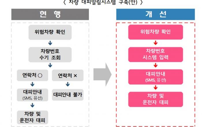 여름철 집중호우나 태풍으로 인한 차량 침수와 고속도로 내 2차 사고 위험에 처한 운전자에 신속하게 대피를 안내할 수 있는 ‘차량 대피 알림 시스템’이 구축된다. 금융위원회와 금융감독원은 차량 침수 및 고속도로 내 2차 사고로 인한 인명·재산피해 최소화를 위해 보험개