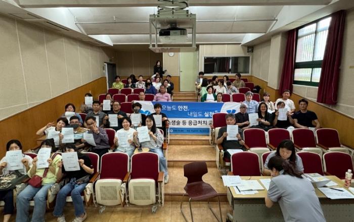 ▲ 고흥군. 찾아가는 생애주기별 안전교육▲ 고흥군. 찾아가는 생애주기별 안전교육▲ 고흥군. 찾아가는 생애주기별 안전교육고흥군은 읍면사무소 기관 단체장 회의와 함께 심폐소생술등응급처치교육을 (사)재난구호사협회 전문강사를 초빙하여 실시하고 있다.심폐소생술은 심정지환자가 발