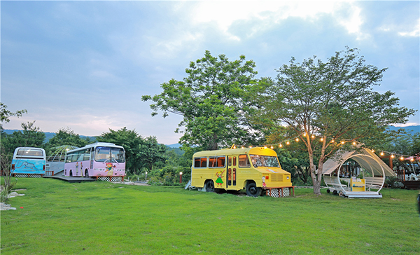 강원 강릉 ‘해품달’ 농장은 4만 여권의 책으로 꾸며진 실내장식과 야외 조형물이 여행객을 맞이한다. 2~4인이 머물 수 있는 쾌적한 숙소와 대형버스를 개조해 만든 이색 숙소도 마련돼 있다.