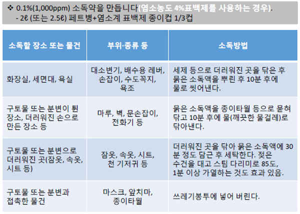 ▲ 가정 내 소독 방법. [자료=질병관리청]