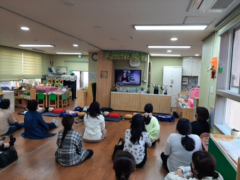 (사)재난구호사협회, 제주시 통합 종사자 어린이이용시설 어린이안전교육 진행 모습