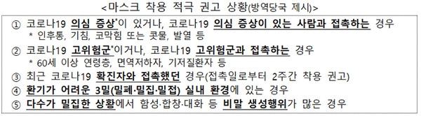 반면, 권고는 법적 구속력은 없으나 나의 건강과 고위험군의 안전을 위해 마스크 착용이 꼭 필요한 상황에서 개인의 자율적 실천을 권하는 것입니다.