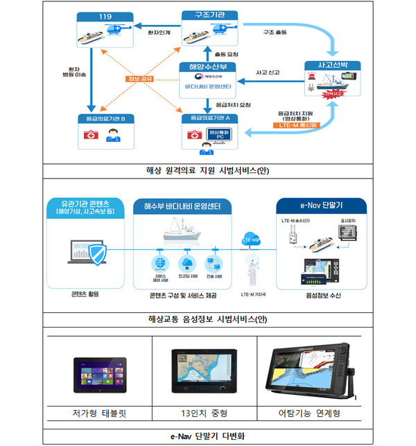 해상응급처지 지원 서비스는 바다 내비게이션의 영상통화 기능을 활용해 생명이 위급한 응급환자의 응급처치를 지원하고 만성질환이 있는 선원들에게 주기적인 건강상담을 제공한다.