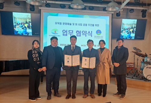 광주 서구 유덕동 행정복지센터는 지난 15일 서구 강산아트홀1관에서 청년기업 ㈜강산인더스트리(대표 신범식)와 마을 문화예술활동 지원 및 BI(Brand Identity) 사업 공동추진을 위한 업무협약을 체결했다.