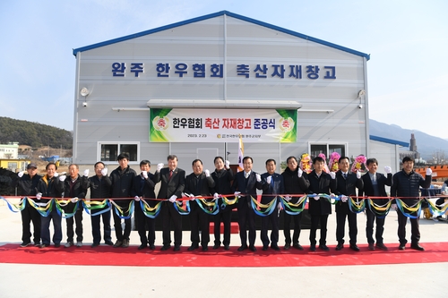 완주군이 한우농가에 사료 및 기자재를 안정적으로 보관·유통할 수 있는 축산자재 공동이용센터를 준공, 안정적 생산체계를 갖추게 됐다.