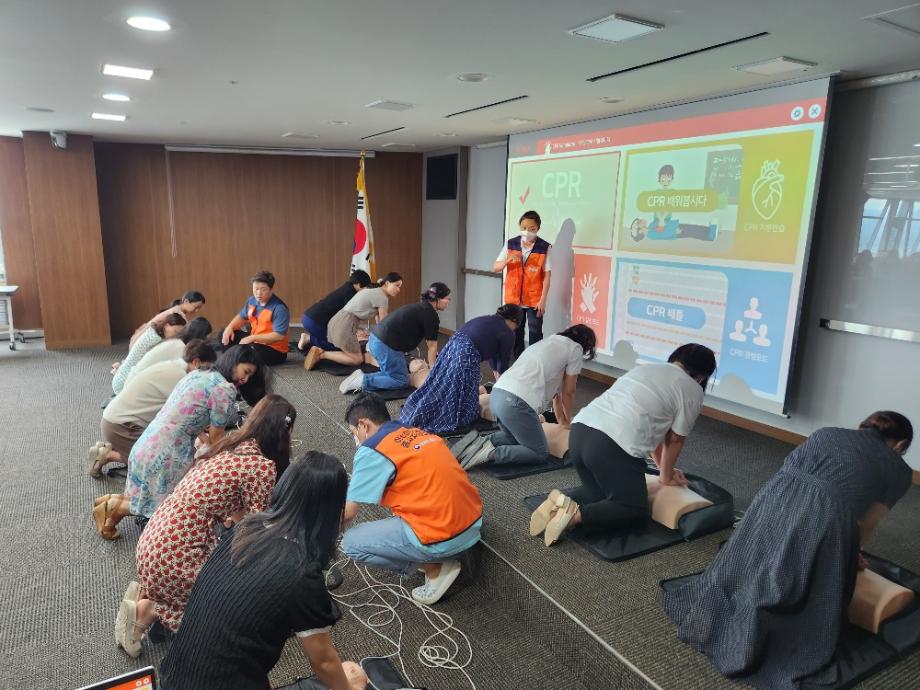 안전교육은 응급상황이 발생했을 때 신속하게 조치할 수 있도록 ▲영아·소아·성인 대상 심폐소생술 ▲자동심장충격기(AED) 사용법 ▲기도폐쇄 시 대처방법 등으로 구성됐다.