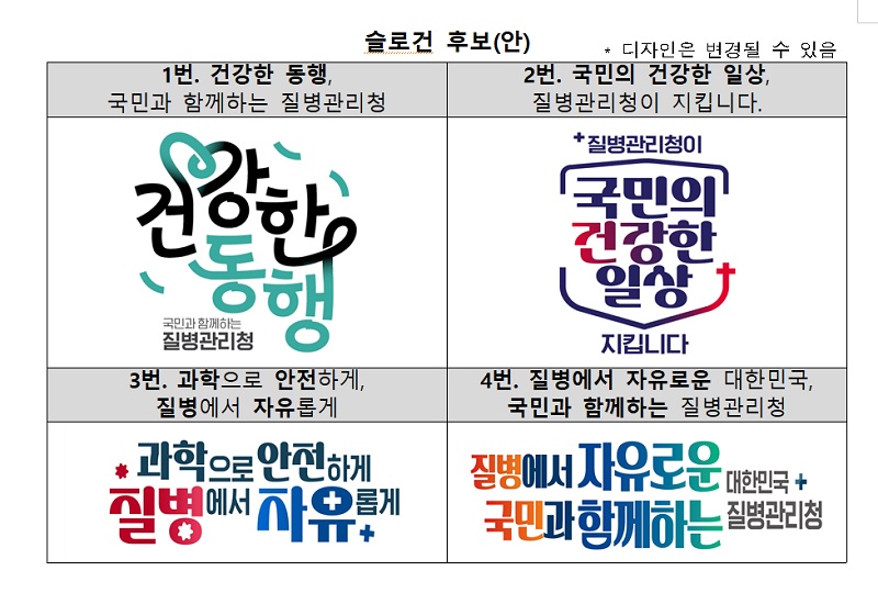 슬로건 후보들은 코로나19를 비롯한 신종감염병의 위험은 물론 결핵 등 상시감염병, 만성질환, 미세먼지 등 일상에서 마주하는 건강위협에 대해 과학적 근거를 바탕으로 국민을 안전하고 건강하게 지키는 질병청의 목표와 포부를 담고 있다.