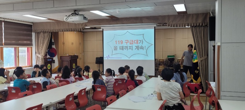 멘토 우가현 응급구조사의 체험교육진행하는모습