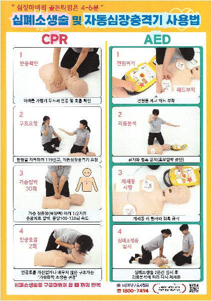 심폐소생술등 응급처치(BLS) 매뉴얼북을 세부적으로 구분지어 편찬되고 있다.