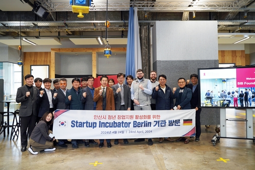 안산시는 지난 24일(현지 시간) 독일 청년창업의 메카로 알려진 베를린의 대표적 청년 창업 지원기관 '스타트업 인큐베이터 베를린'(Startup Incubator Berlin)을 방문해 벤치마킹했다고 25일 밝혔다.