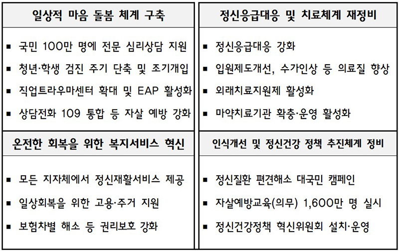 직장인에게는 직장 내 정신건강지원을 강화하고 고위험업종에 대한 관리도 활성화한다.