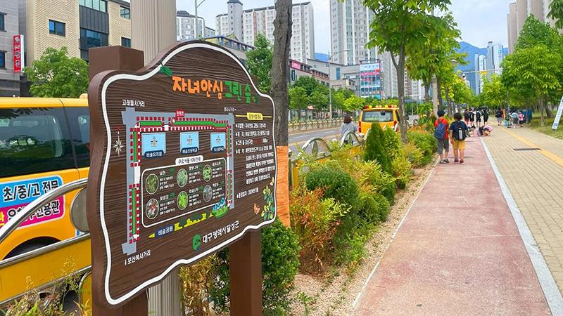 대구시는 올해 7억 원의 사업비를 들여 2개 학교 주변 통학로에 약 770㎡의 자녀안심그린숲을 조성했다.